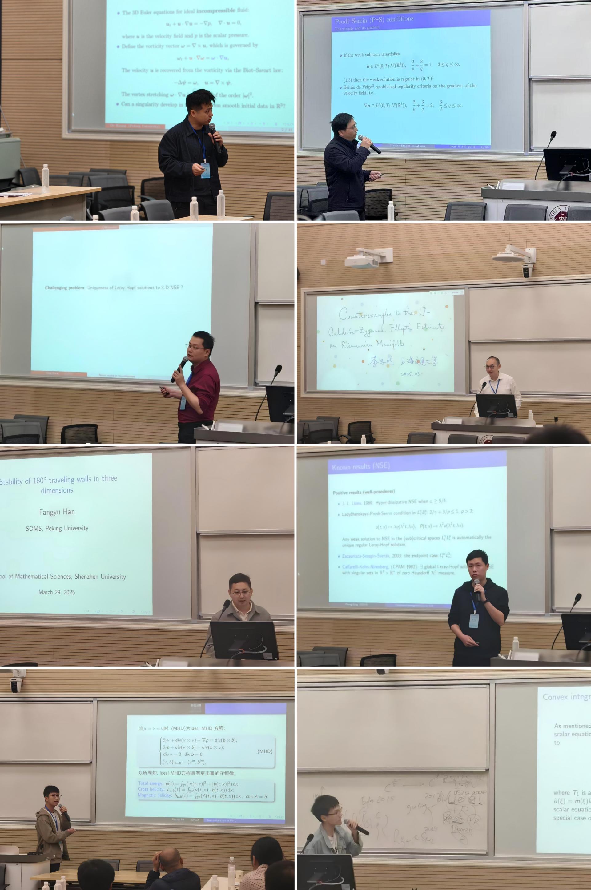 From March 28 to 30, 2025, the Academic Symposium on Convex Integration Methods in PDEs and Related Topics, hosted by the School of Mathematical Sciences of Shenzhen University, was successfully held at the Yuehai Campus. The symposium aimed to present new developments and trends in related research fields, foster mutual understanding and collaboration through in-depth discussions, and promote advancements in PDEs and related disciplines. The event brought together distinguished scholars and PhD candidates from prestigious institutions including Peking University, the Academy of Mathematics and Systems Science of the Chinese Academy of Sciences, the University of Science and Technology of China, Shanghai Jiao Tong University, Nanjing University, Sun Yat-sen University, Xiamen University, Sichuan University, and the Chinese University of Hong Kong.