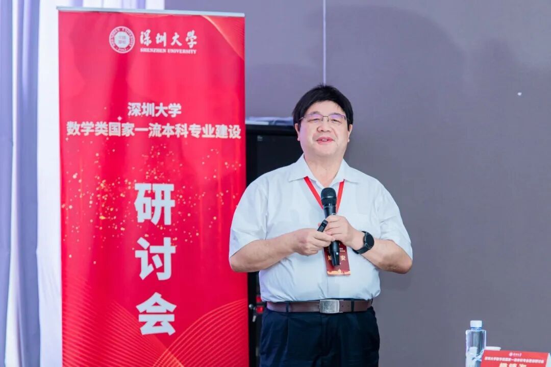 Professor Yao Zheng’an, President of the Guangdong Mathematical Society, Director of the Guangdong-Hong Kong-Macao (National) Applied Mathematics Center, and Professor of the School of Mathematics at Sun Yat-sen University, introduced the construction of undergraduate programs at Sun Yat-sen University. This included the development history of the Base Class and Top-Tier Innovation Class, the construction of curricula and teaching materials, training objectives and achievements. He also expressed appreciation and recognition for the rapid development of the mathematics discipline at Shenzhen University in recent years.