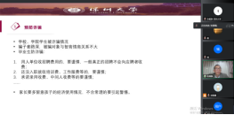 数学研究所,在学科软科排名快速提高,数学学子就业形势好,升学深造氛围浓厚,毕业校友表现得到社会用人单位认可,学院的发展进入了新的发展阶段,将紧紧围绕学校发展目标,为建设世界一流创新型大学、一流数学学科而努力。随后,张老师紧扣毕业生主题从学业学习、就业深造、心理关爱、预防诈骗、国防征兵五个方面展开,和家长、同学们进行了交流。