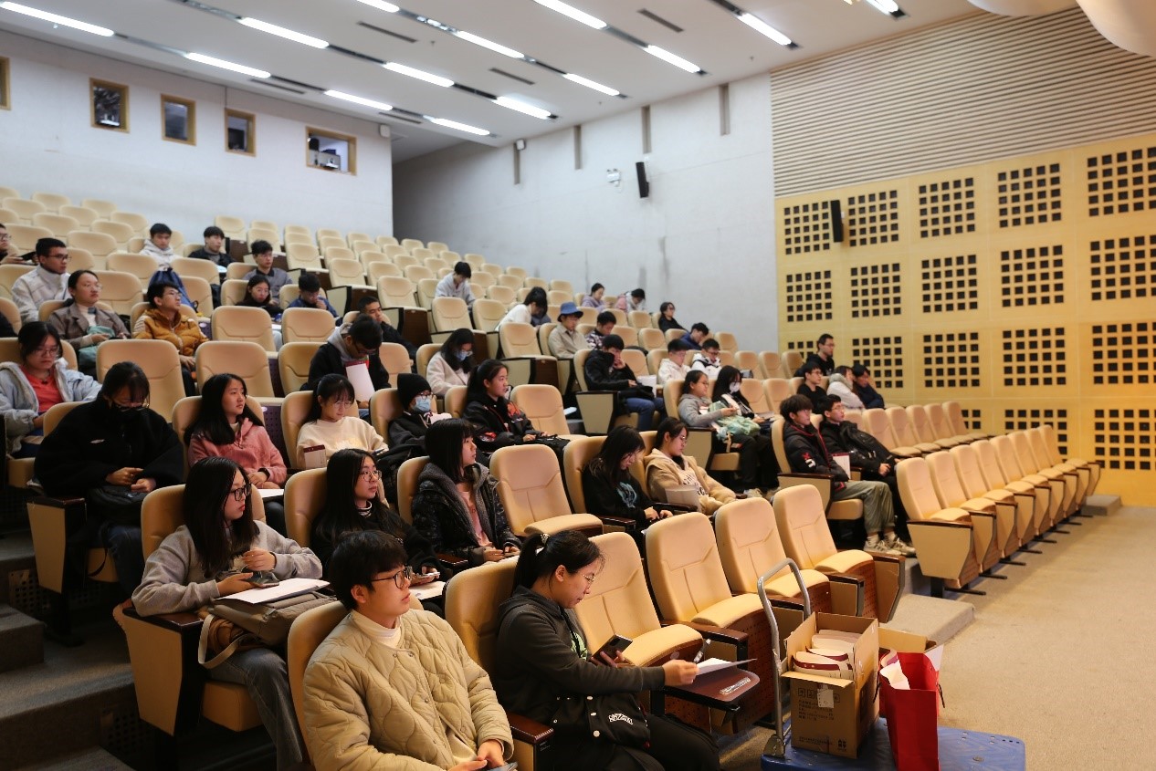 2021年12月28日中午,数学与统计学院在汇星楼三号报告厅召开期末全体学生干部会议,本次工作会议由辅导员肖晓君老师主讲,辅导员孙毅翀、钟晓姗及全体数院学生干部参加。