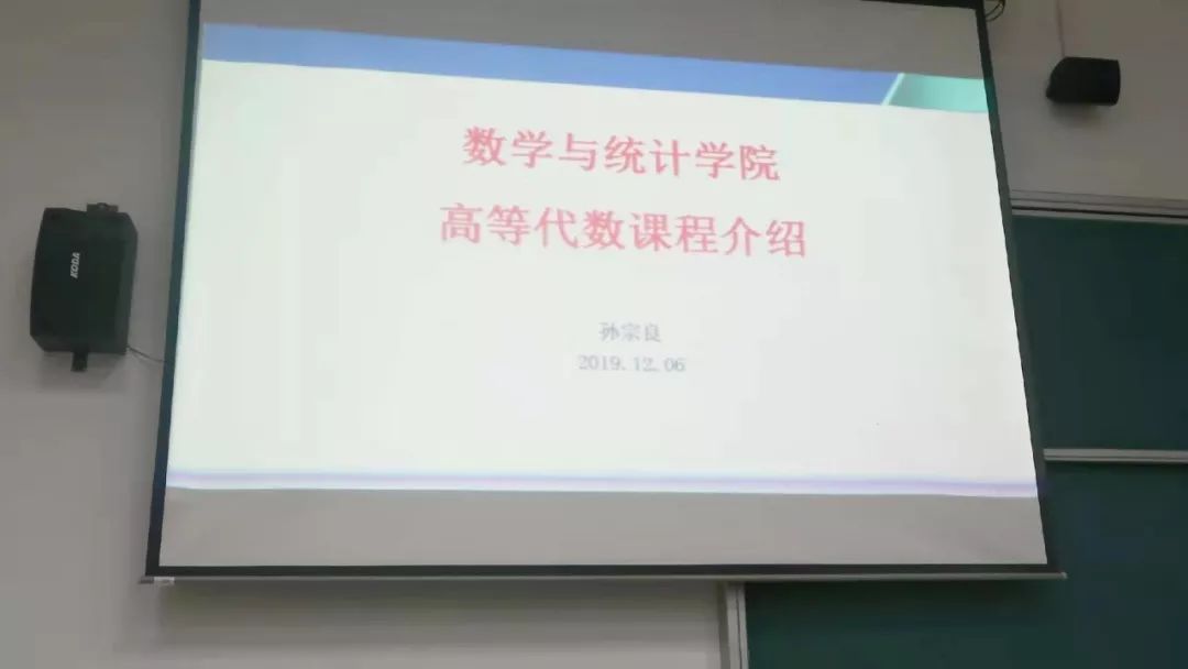 讲座简介:2019年12月6日19时00分,数学与统计学院高等代数讲座在文科楼阶梯教室召开。本次讲座主要面向数院大二大三学生,并且有幸邀请到孙宗良老师带领我们进一步了解高等代数这门课程。本次讲座主要由数学与统计学院双创部组织策划,由学工办人员协作完成。