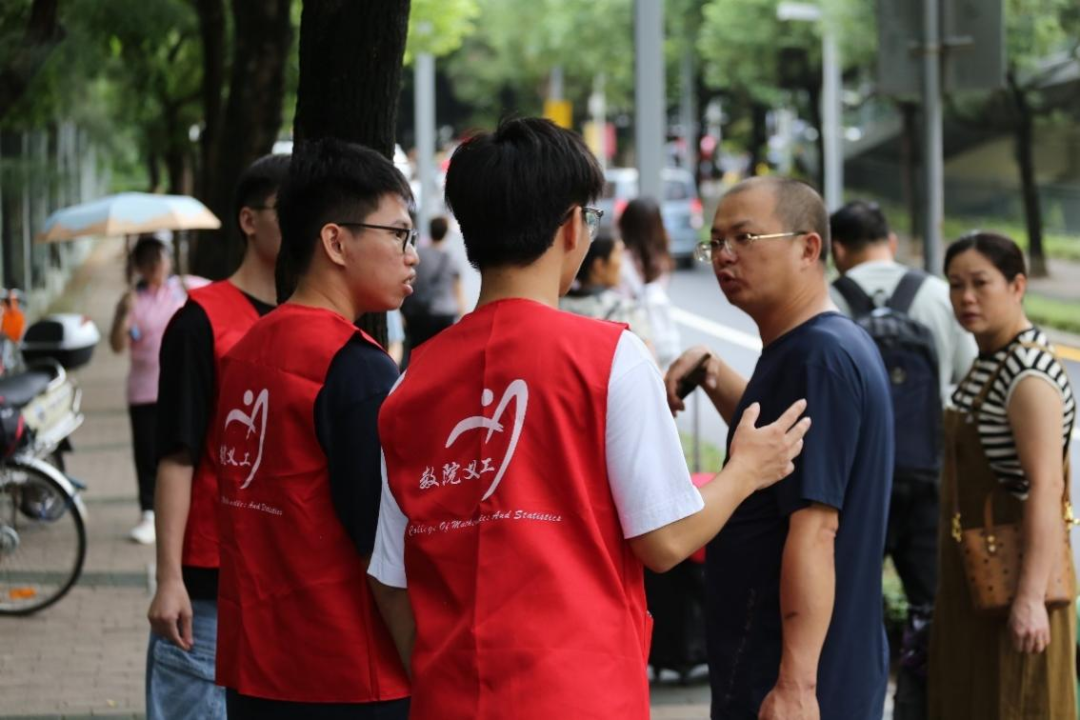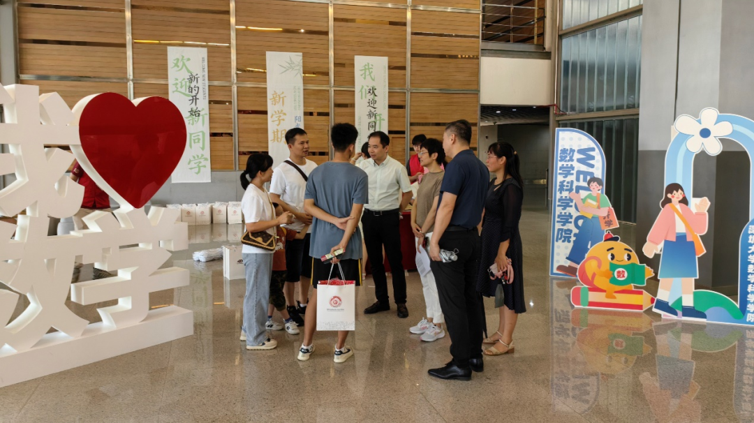 在新生报到进行得如火如荼之时,学院各领导、辅导员及老师也来到汇星楼一楼新生报到处视察报到工作。院领导先对现场的志愿者表达了深切的感谢,这些热心的志愿者在报到现场不辞辛劳,为新生提供了宝贵的帮助和指导。随后,王瑜书记、院长一行人对到场报到的新生们进行了亲切地问候,不仅关心了新生雨天出行、行李搬运等问题,还询问了新生对于学院的看法和未来的期望……进行了深入的交流后,院长殷殷嘱托新生在新学期要努力学习,力争上游,争取在深大数院的平台上取得新成就、新突破。