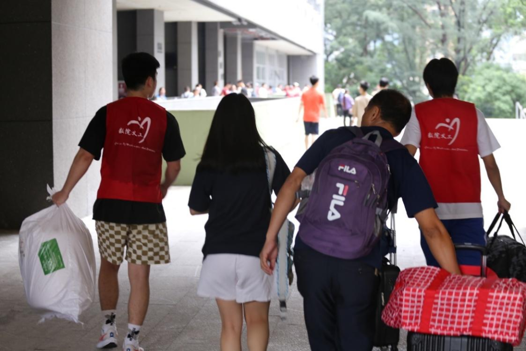 在新生首日到校时,数院团委、学生会以及志愿者们也在努力为新生报到提供迎新帮助。早晨八点,数院志愿者们便在各大校门口、新生宿舍楼下以及汇星楼一楼集合,他们手举数院专业指引牌,引导数院新生进行报到与宿舍安置。65名学长学姐主动报名成为迎新志愿者,担当起帮助新生搬运行李、引导新生进行报到、介绍学校场馆设施、为新生答疑解惑等重任。正是因为以前受过学长学姐帮助,志愿者们冲在最前线,奔波在学校各个角落,为新生们服务。这份热忱一定会由各届数院学子们一届一届地传承下去,成为数院团学乃至整个数院的不朽精神。