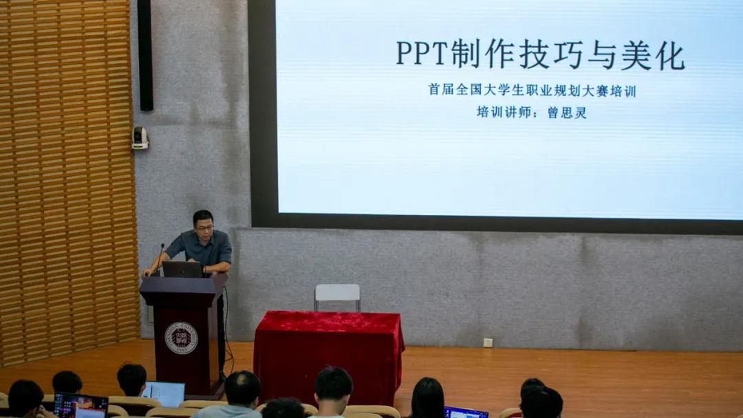 2024届就业辅导季之生涯规划与就业指导分享会暨首届全国大学生职业规划大赛赛前指导培训第四场《PPT制作技巧与美化》在汇星楼二号报告厅举办,邀请到人力资源实战专家、教练技术课程讲师、AACTP行动学习践行专家、职业规划师曾思灵老师主讲。