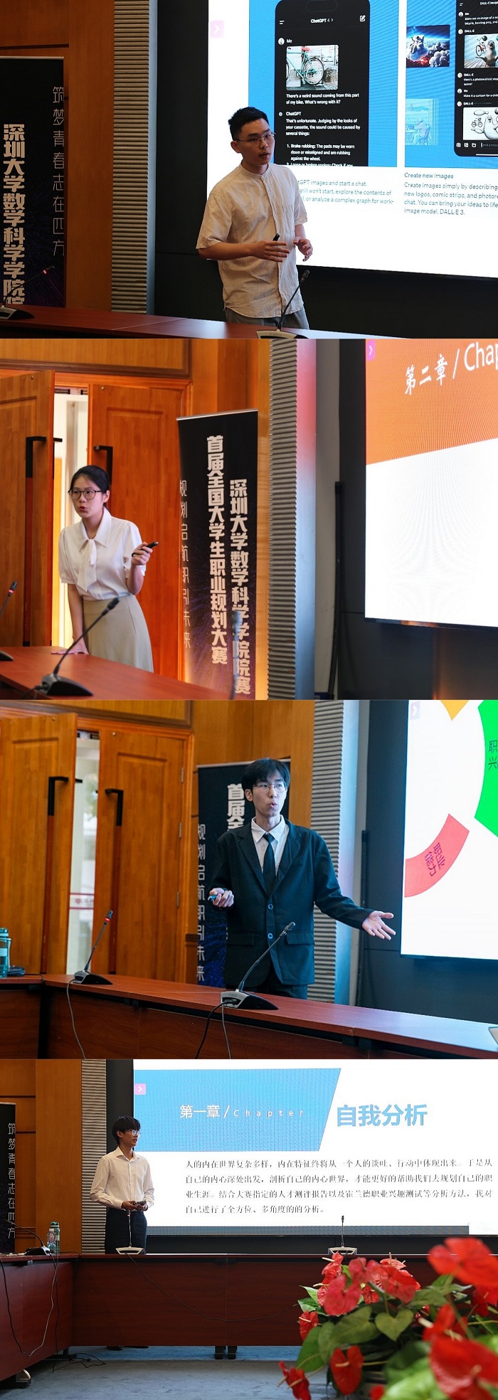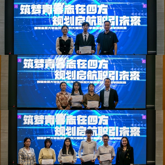 比赛现场,选手们神采奕奕、各显所长,围绕自我认知、环境因素、规划和目标展开,运用简练准确的语言和精美的PPT将一个个未来职业蓝图展现在大家面前,充分表现了大学生浓厚的家国情怀、扎实的专业基础、丰富的实践经历、清晰的自我认知、明确的职业目标和可行的发展路径,展现了新时代青年大学生的责任意识和成长潜力。评委们逐一根据选手的职业规划和职业意向进行提问和提出了针对性的建议。选手们表示对自己有了更全面的认知,对职业有了更深入的了解,对目标有了更明确的聚焦,对路径有了更切实的判断。最终,评委组根据选手的现场自我展示,并综合生涯成长报告和求职简历的情况,分别评出院赛成长赛道和就业赛道一、二、三等奖。