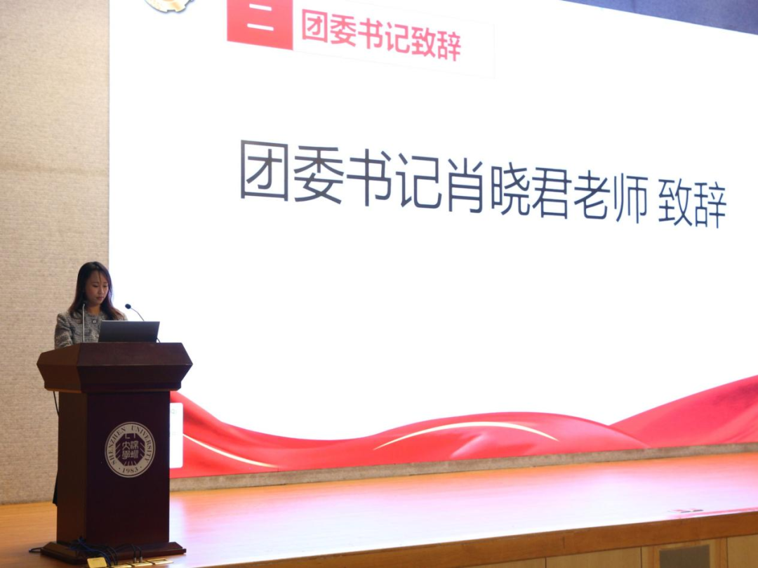 接下来,由团委学生副书记肖璇上台发表对新一年团委工作的讲话,她总结了近期的工作成果与收获,同时也指出团学的不足与缺点,希望团学成员继续努力,互进互促,共同创造美好的未来。