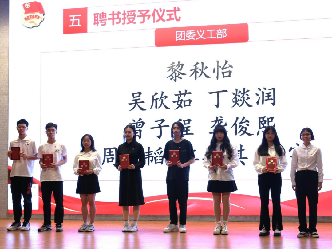 随后,他为学生会委员会的成员颁发聘书并合影留念。