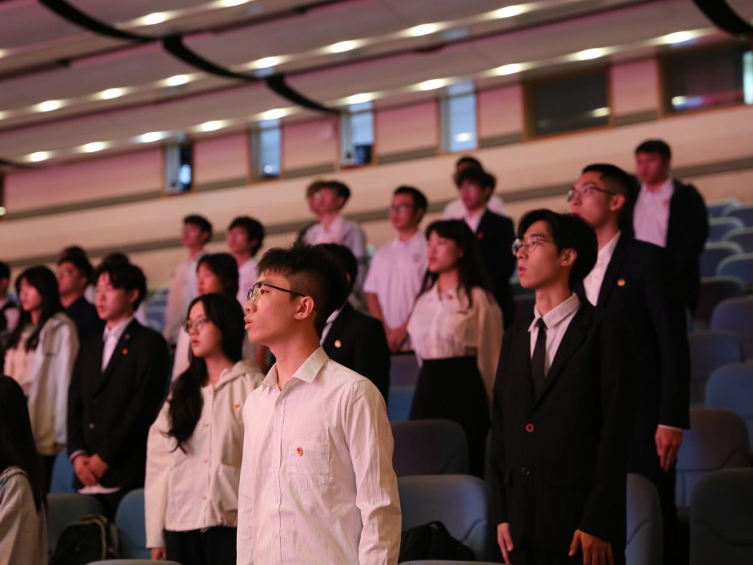 大会的第一项议程为奏唱国歌、团歌,在鲜艳的五星红旗照耀下,全体成员起立,庄严唱响国歌、团歌。