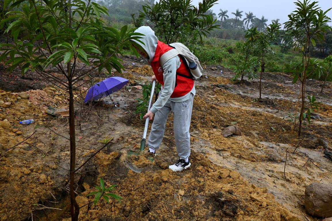 尽管山路崎岖,且时有细雨绵绵,但这并未能动摇师生们投身绿色事业的决心。这群年轻人不畏艰难,敢于吃苦,乐于奉献,他们的青春热情在温厝村的山间地头得到了充分的展现。经过数小时的辛勤劳动,一片新绿在山坡上扎根生长,为这片土地增添了无限的生机与活力。植树活动结束后,91自拍