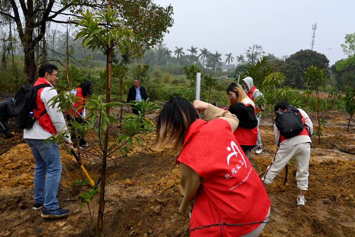 副院长、本科生第二党支部书记赵毅、学院团委书记肖晓君、团委副书记孙毅翀带领十余位青年党员及团学骨干前往汕尾海丰县海城镇温厝村开展“绿美广东,青年先行”党建带团建主题植树活动,师生们以实际行动绘就了明媚的绿美乡村新画卷。