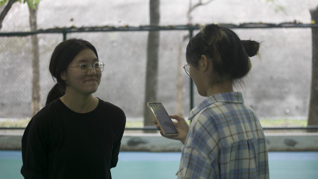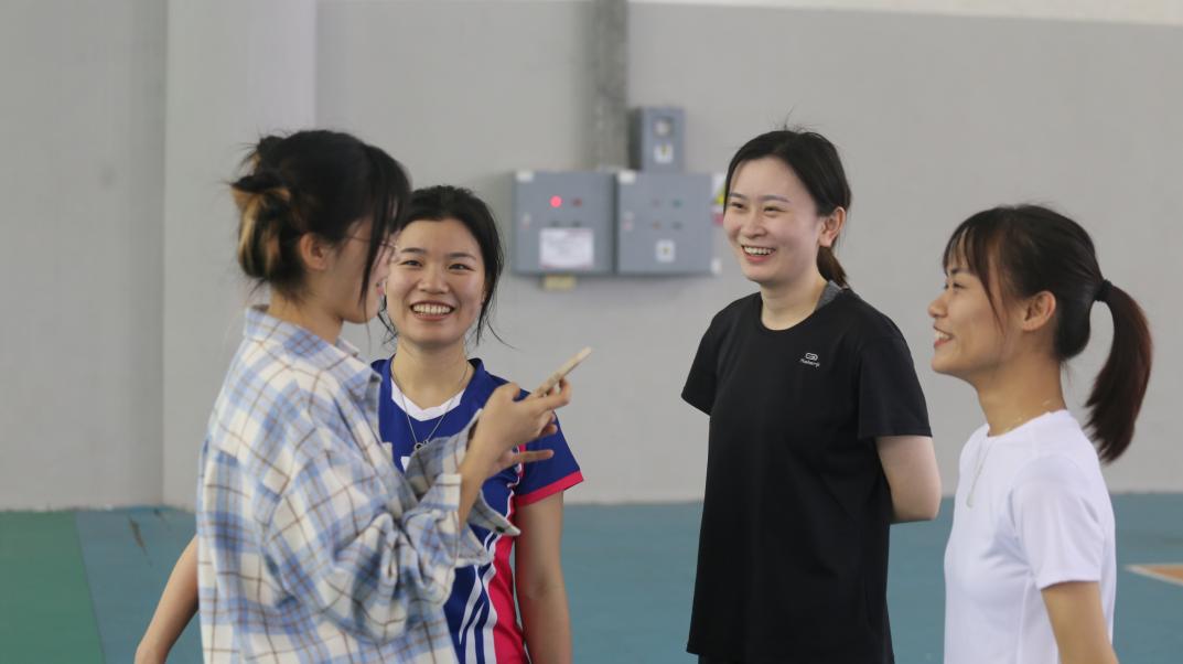 沈依菲:认识了更多师姐,然后我们打排球也很快乐。