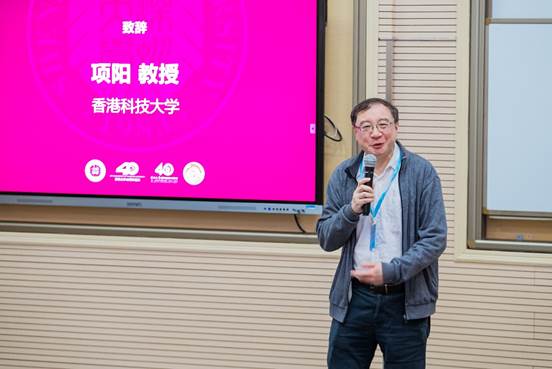 接着,香港科技大学项阳教授致辞。他向组委会对本次会议的组织安排表示感谢,希望通过此次会议能进一步促进各位专家学者们的合作交流,并希望固体材料中的数学建模和数值算法领域蓬勃发展。