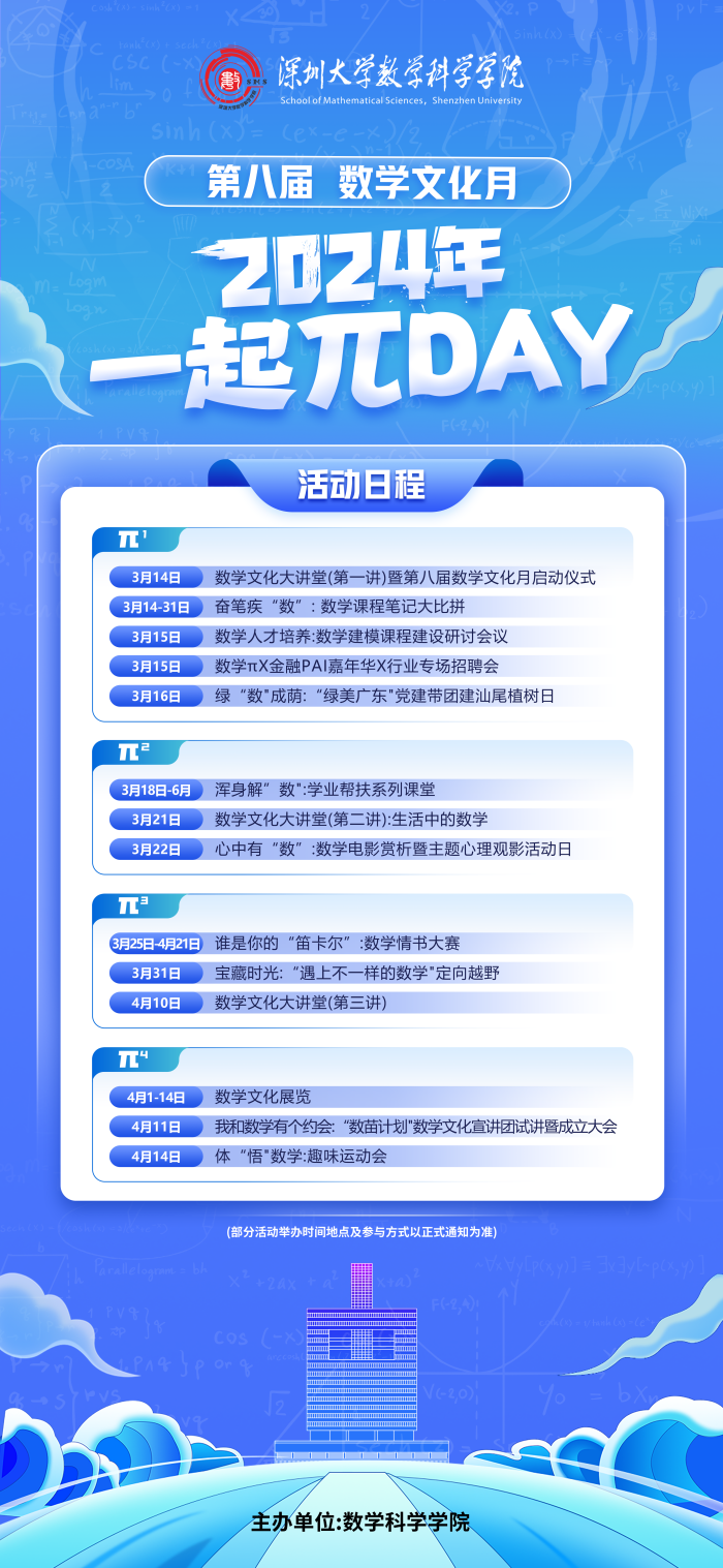 习近平总书记在党的二十大报告中指出,要全面提高人才自主培养质量,着力造就拔尖创新人才,加强基础学科建设。数学作为基础学科,要加强基础研究,从源头破解“卡脖子”难题,也要加强科普宣传,传播先进数学文化、提高全民数学素质、践行数学强国。91自拍 党委以党建为引领,党建带团建,以每年3月14日“国际数学日”为契机,开展系列“数学文化月”专业特色活动,以数学科普报告、交流座谈、文化展览、趣味活动等多种形式,营造“学习数学、交流数学、研究数学”的良好氛围。