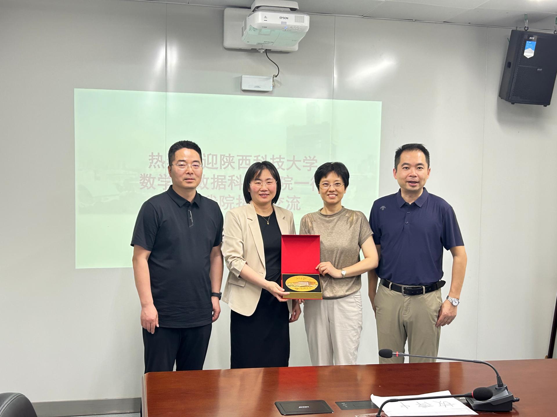 在规范党组织领导与运行机制、全面落实基层党建主体责任、促进党建与业务融合方面做出的努力及取得的成果。郭改慧书记对陕西科技大学的办学历程以及数学与数据科学学院的党建情况进行了介绍,分享了学院在硕士学位点建设、师资队伍建设、党建工作等方面的经验。李剑院长及与会人员就学科建设、高水平人才队伍建设、党建与业务融合等重要议题展开了深入交流和探讨,共同探讨了未来在这些方面的合作与发展路径。双方表示希望加强交流、相互学习,共同推动数学学科发展,为培养更多优秀人才和服务社会做出更大贡献。