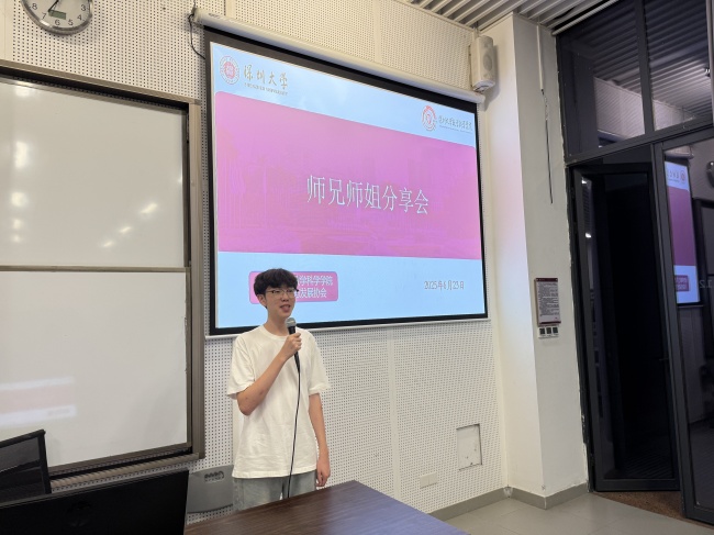 「师兄师姐有话说」升学专场在致理楼 B 座 112 教室举行。这场聚焦考研与留学双路径的分享会,特邀 21 级数学与应用数学(数理金融班)张霁超(曾获数学建模国赛广东省二等奖 ,全国大学生数学竞赛广东省一等奖等奖项,目前已被中山大学(珠海校区)数学专业录取,中山大学录取)与 21 级统计学专业邓思明(曾荣获91自拍
