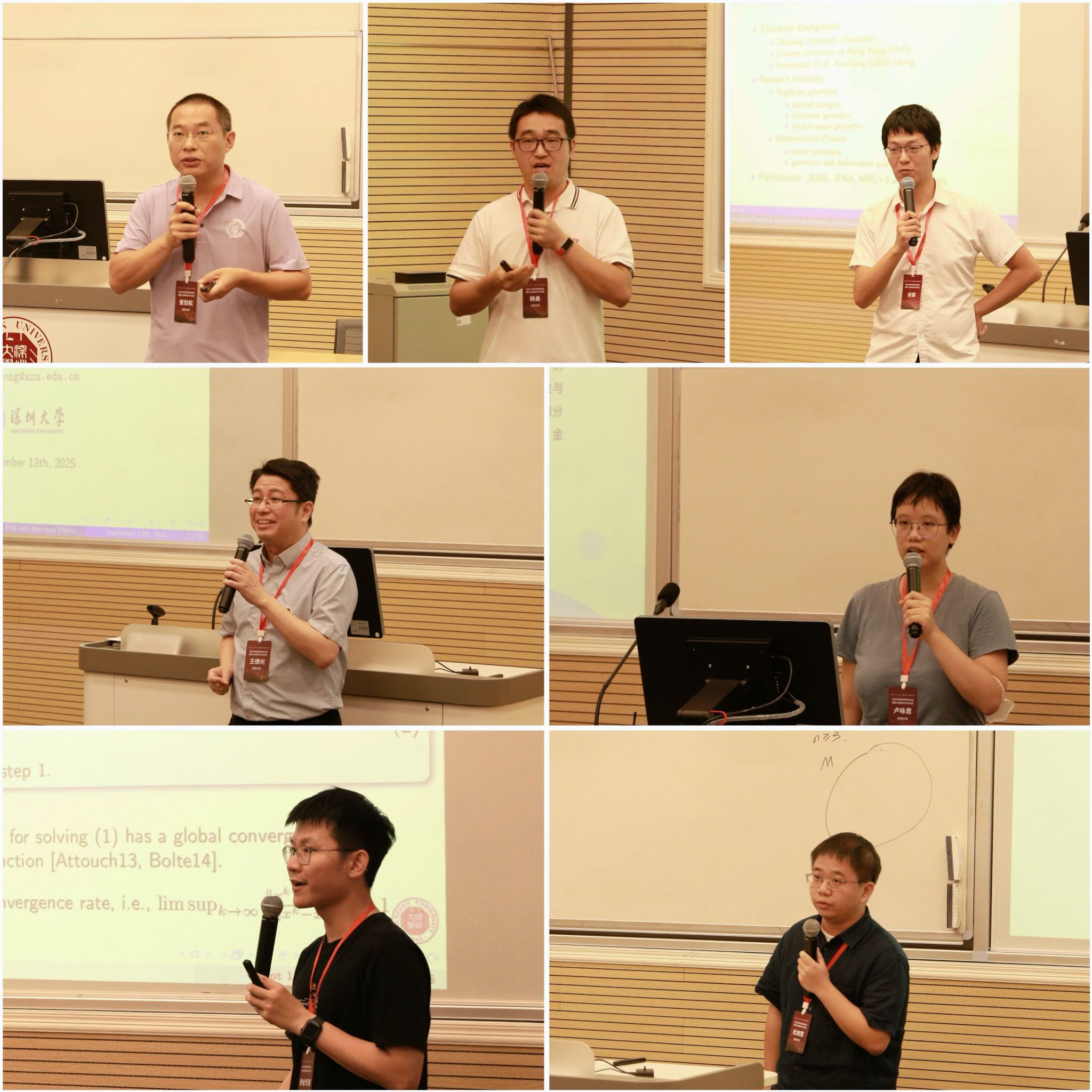 汇报中,新入职教师围绕复分析、代数拓扑、偏微分方程、控制与优化理论等数学领域前沿方向展开分享,充分展现出新入职青年教师扎实的学术功底与开阔的科研视野。每场汇报结束后,现场专家与教师均积极互动,从多视角提出深度问题、从多维度展开学术探讨,高质量的交流互动将会议氛围推向高潮。