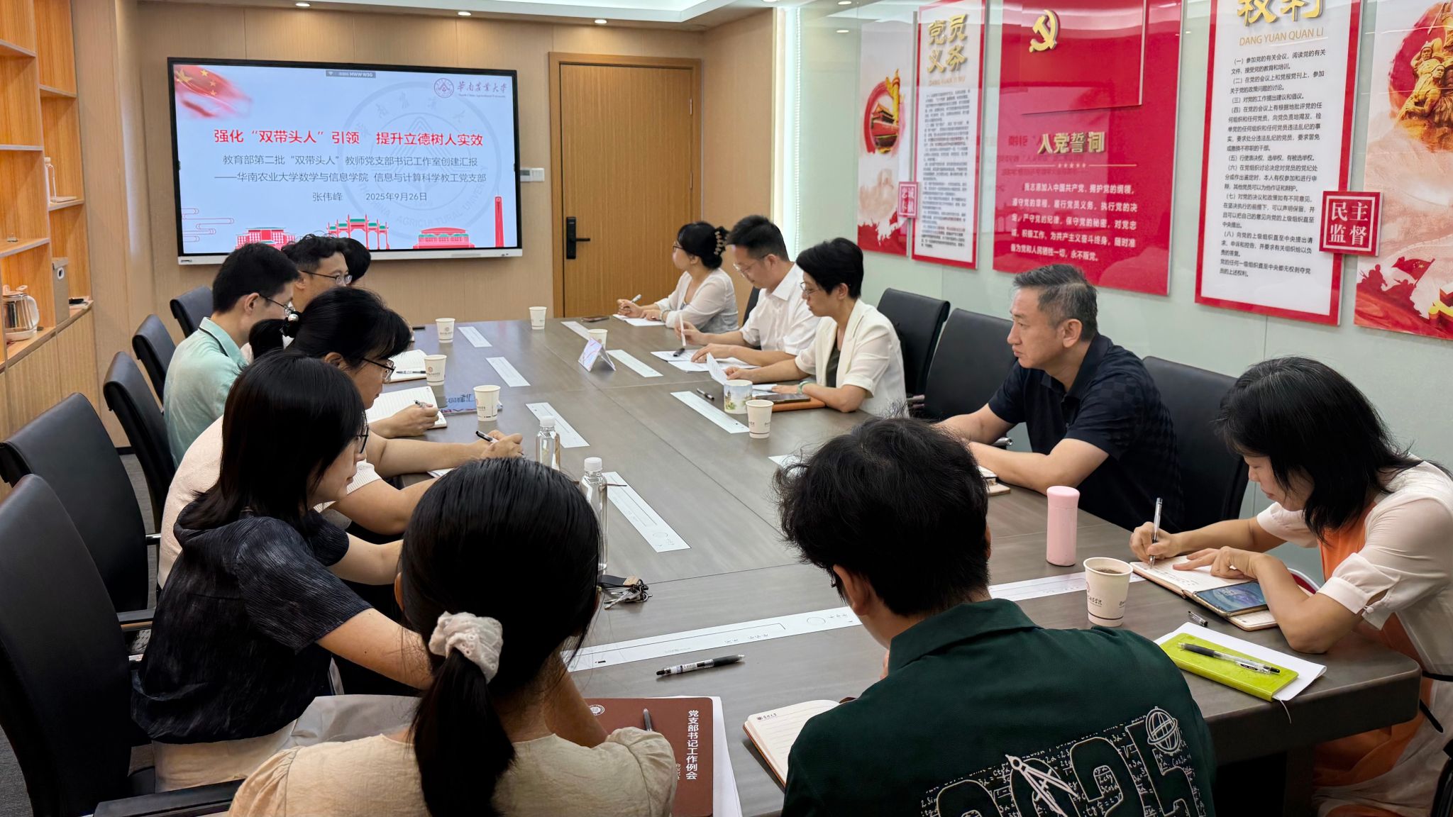 特邀教育部第二批“双带头人”教师党支部书记工作室负责人、华南农业大学数学与信息学院、软件学院张伟峰教授来院开展数学学科党建工作交流研讨会。学院党委书记王瑜、党委副书记叶星、副院长赵毅、全体党支部书记、党建组织员和党务秘书参加会议。