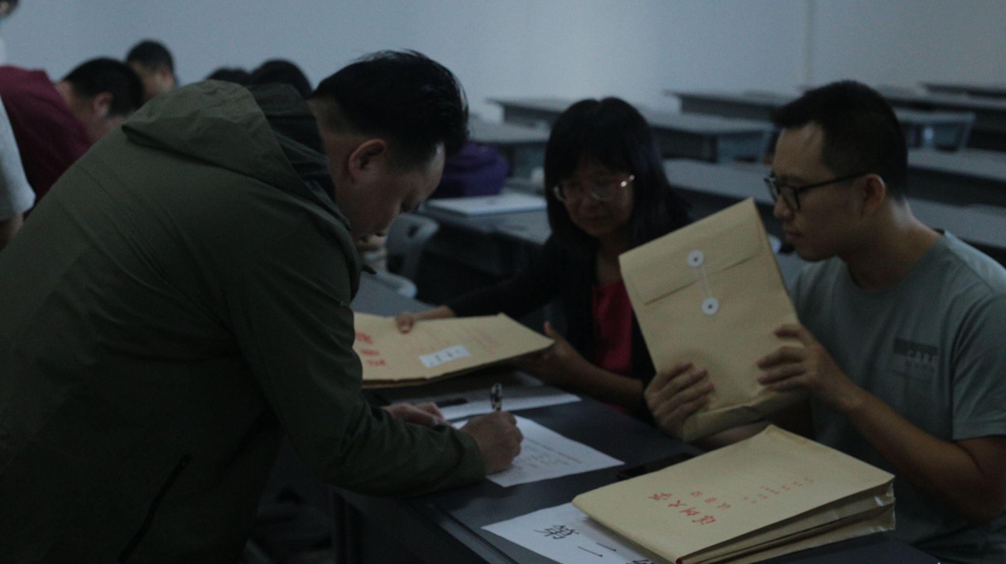 考务室内考前领取试卷的情况