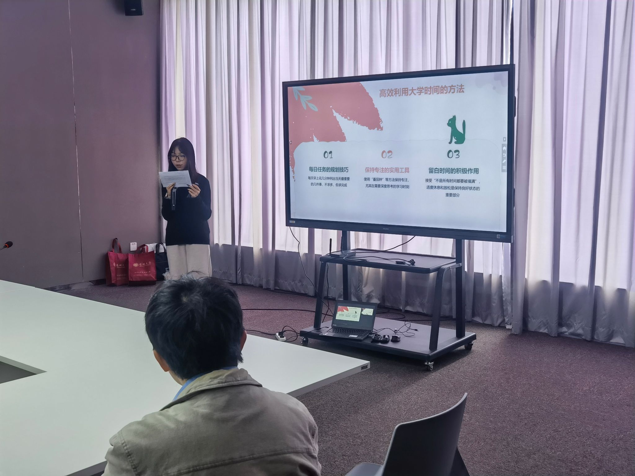 责任片区内的近30名大一新生代表应邀参加了会议,会议由学院招生联络员黄梓桐老师主持。