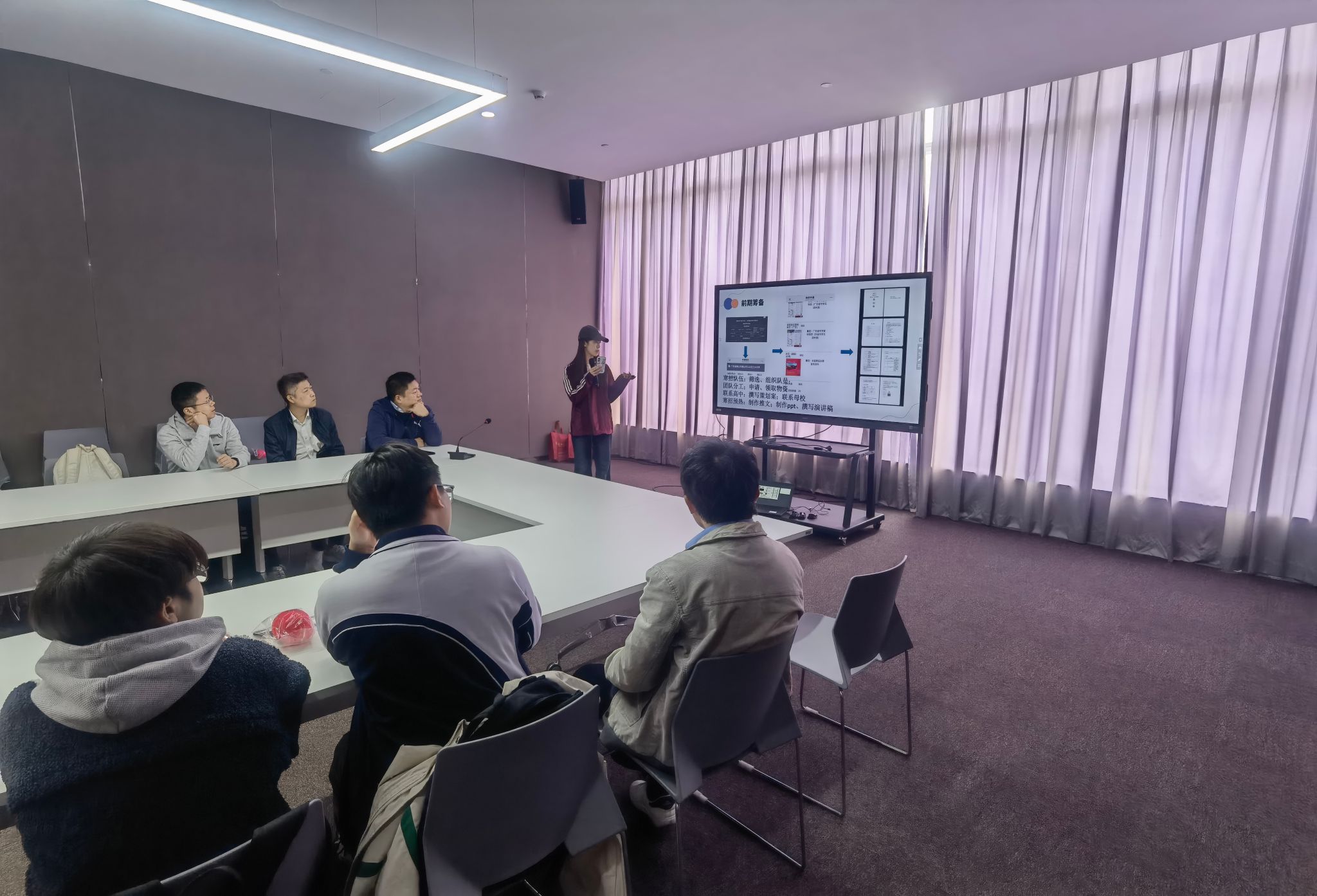 首先,韩雨副院长致欢迎辞,并向同学们介绍了今天到场的各位老师。随后,黄梓桐老师介绍了寒招活动的意义,将寒招的报名方式以及报名后大概的流程展示给在座的同学,同时向大家介绍了学院所负责的责任片区去年招生宣传工作的一些情况,以及对应责任区联系人具体的联系方式,鼓励大家在积极参加寒招的同时,努力动员身边的同学也加入寒招队伍。