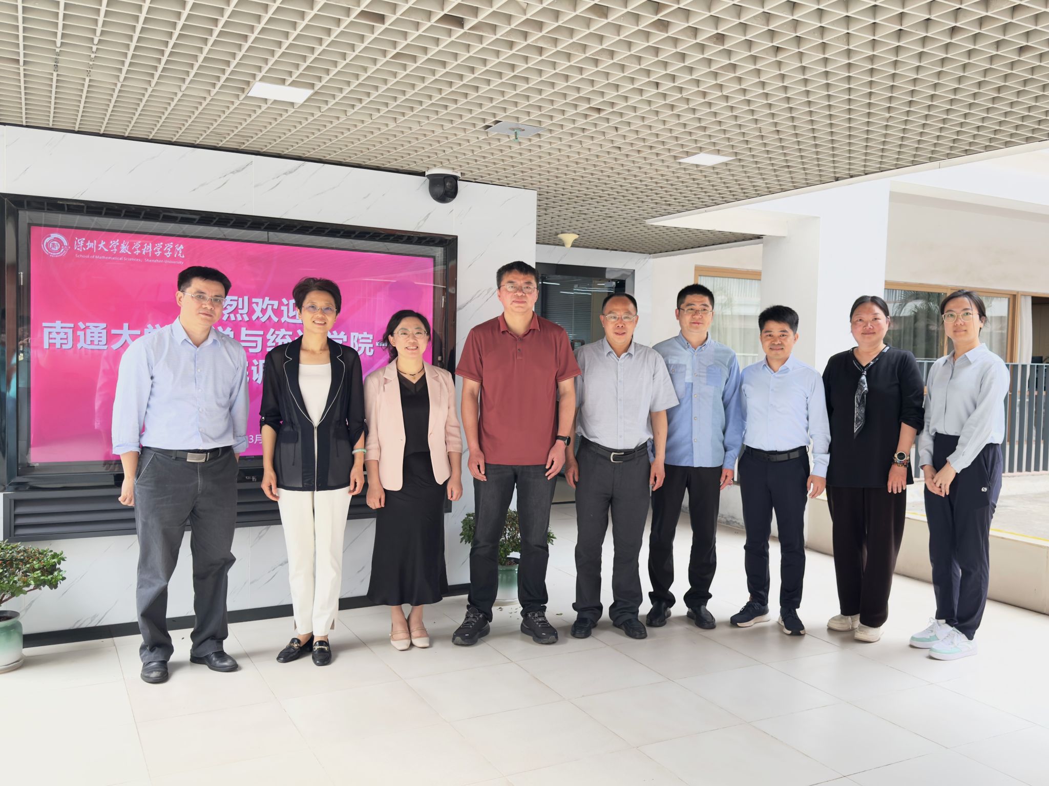 3月24日上午,南通大学数学与统计学院院长王林峰、党总支书记刘丽莉、学科带头人黎野平、副院长金晶亮、院长助理薛莲一行五人到访91自拍