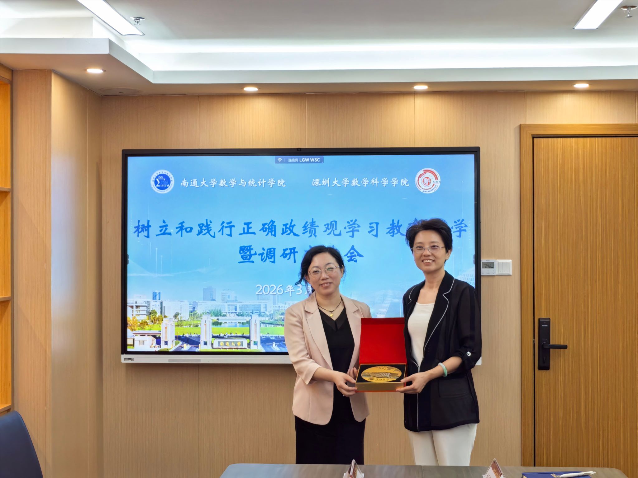 王瑜书记对南通大学数学与统计学院一行的到来表示热烈欢迎,分享了学院在党建工作方面的特色做法,重点介绍了2023年以来学院党委先后获评党建“双创”标杆院系和党建工作样板支部的经验,并就推动党建工作与业务工作深度融合的具体举措作了说明。详细介绍了学院的发展历程与现状,从学科排名、师资队伍、教师团队、科研发展、人才培养等方面系统展示了学院的建设成果。