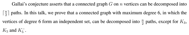 报告题目: On Gallai's conjecture for graphs with maximum degree six