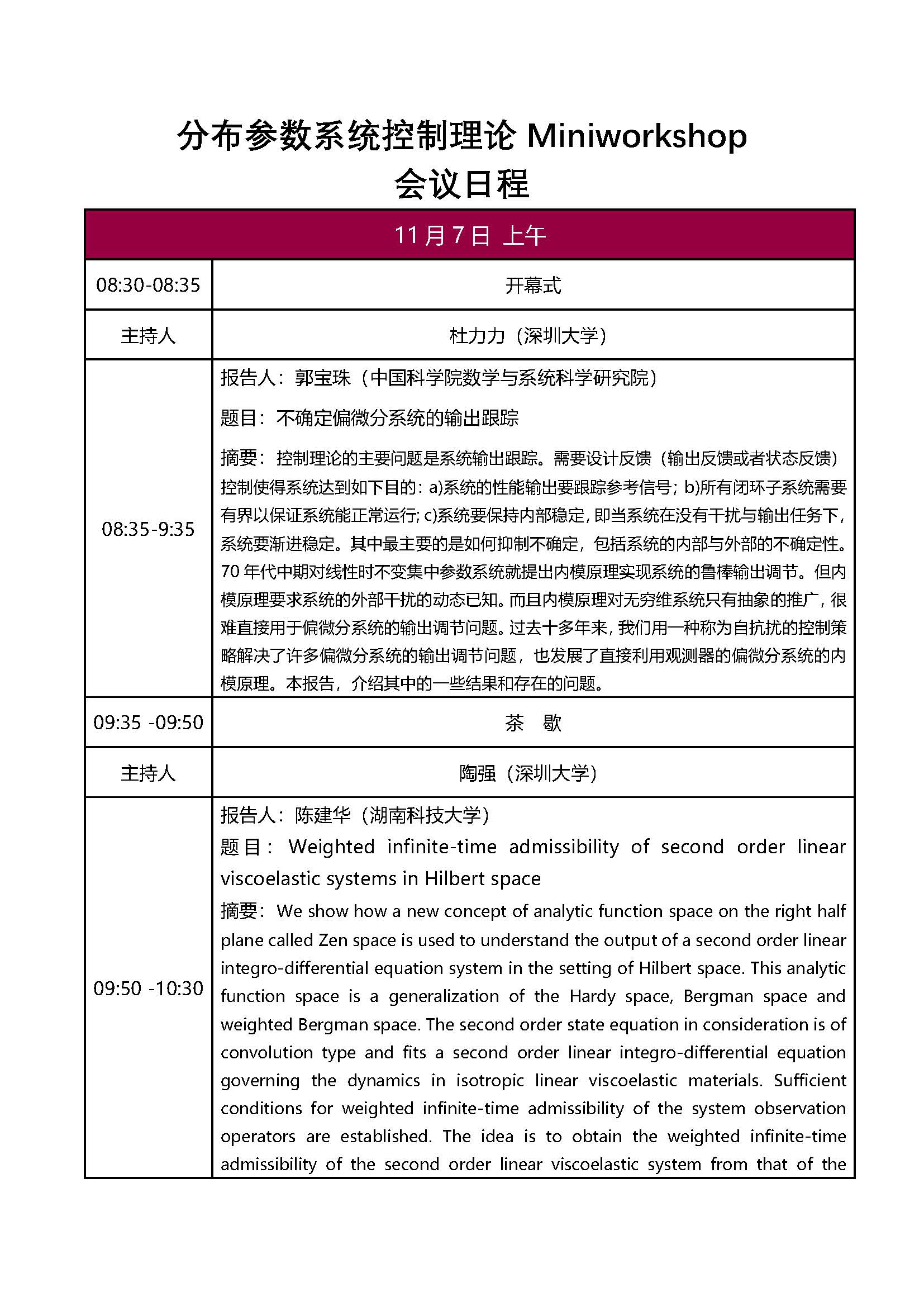 粤海校区汇星楼举办分布参数系统控制理论Miniworkshop研讨会。具体事宜如下: