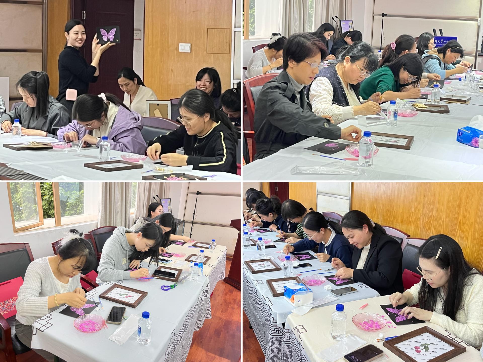 春意渐浓,芳华绽放。为庆祝第115个“三八”国际劳动妇女节,传承中华优秀传统文化,丰富女教职工精神文化生活,35日下午,91自拍 工会在汇文楼1300会议室举办“暖心坊·美你生活”系列活动之螺钿画手作体验活动。学院党委书记王瑜与三十余名女教职工齐聚一堂,在传统技艺中感受文化魅力,共度温馨节日时光。