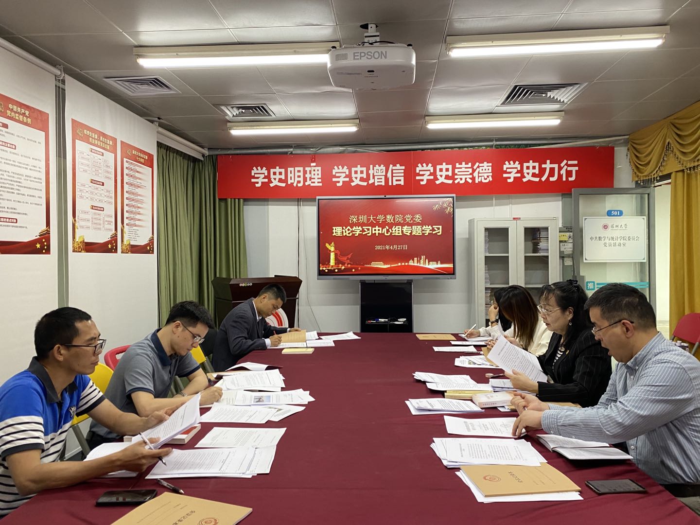 4月27日下午,在汇星楼501会议室胡萍书记主持召开数学与统计学院党委理论学习中心组会议。学院领导班子成员、党委委员、纪委委员、院党政办负责人参加学习。