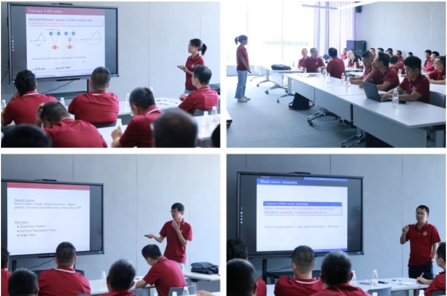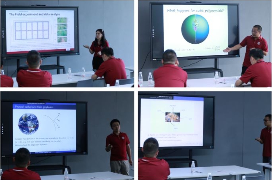 此后分别由崔贵珍教授、陈之兵教授、胡耀华教授和赵毅副教授担当主持人,对新入职老师们的情况做了介绍。他们从事不同的研究方向,为参会教师带了七场精彩的汇报,让大家了解了不同领域中数学理论的应用。每场汇报结束,在场老师都会从不同角度提出一些问题,一起交流探讨。