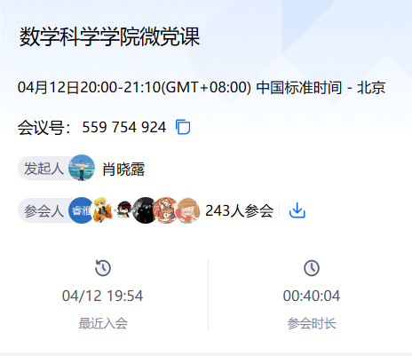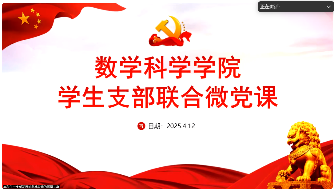 分党校组织四个学生党支部联合开展了2025年第一次集中微党课。此次微党课通过腾讯会议形式进行,由本科生第一党支部承办,唐晓和肖扬两位正式党员同志主讲,林俊鑫同志主持,学院本科生和研究生党员、发展对象、积极分子共243人参加。微党课围绕马克思主义唯物辩证法与作风建设主题展开,两位主讲人结合理论与实践,为与会同学带来深刻的思想启迪。