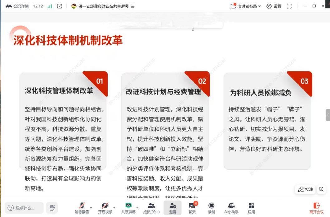本次微党课从战略认知、制度意识、辩证思维三方面强化教育,增强科技报国使命感,夯实政治规矩意识,激发青年学生在改革发展中主动作为。与会同志纷纷表示将深化理论学习,在强国建设、民族复兴征程中贡献青春力量。